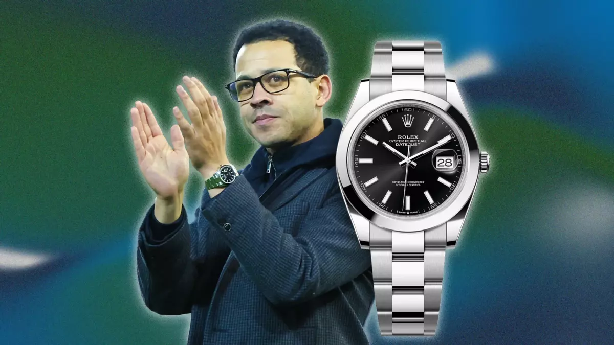 О характере нового тренера можно судить по одной детали — его часам. На запястье Росеньора красуется классическая Rolex Datejust. Это не ультрасложная или редкая модель; по сути, в ней есть лишь одна дополнительная функция — отображение даты. Это надежная «рабочая лошадка», занимающая место в каталоге Rolex с 1945 года.
