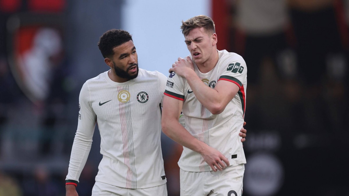 Нападающий «Челси» Лиам Делап был вынужден покинуть поле из-за травмы плеча во время матча Премьер-лиги против «Борнмута».