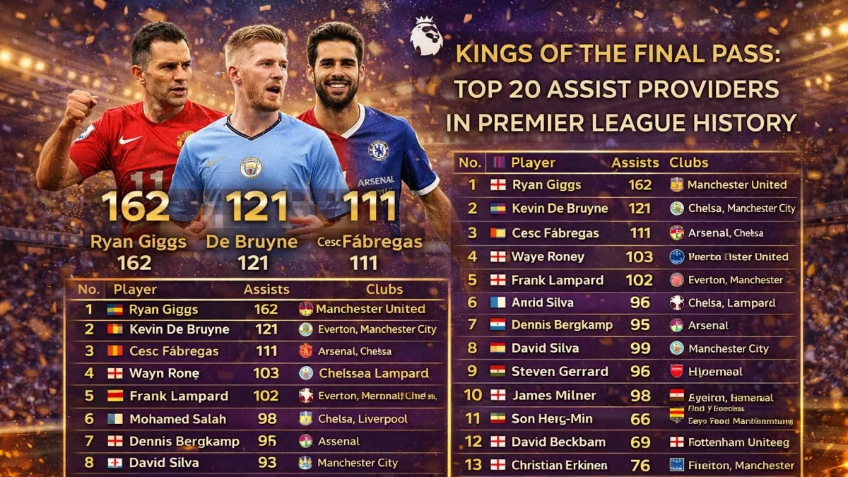 По состоянию на февраль 2026 года, редставляем рейтинг лучших ассистентов в истории Английской Премьер-лиги.