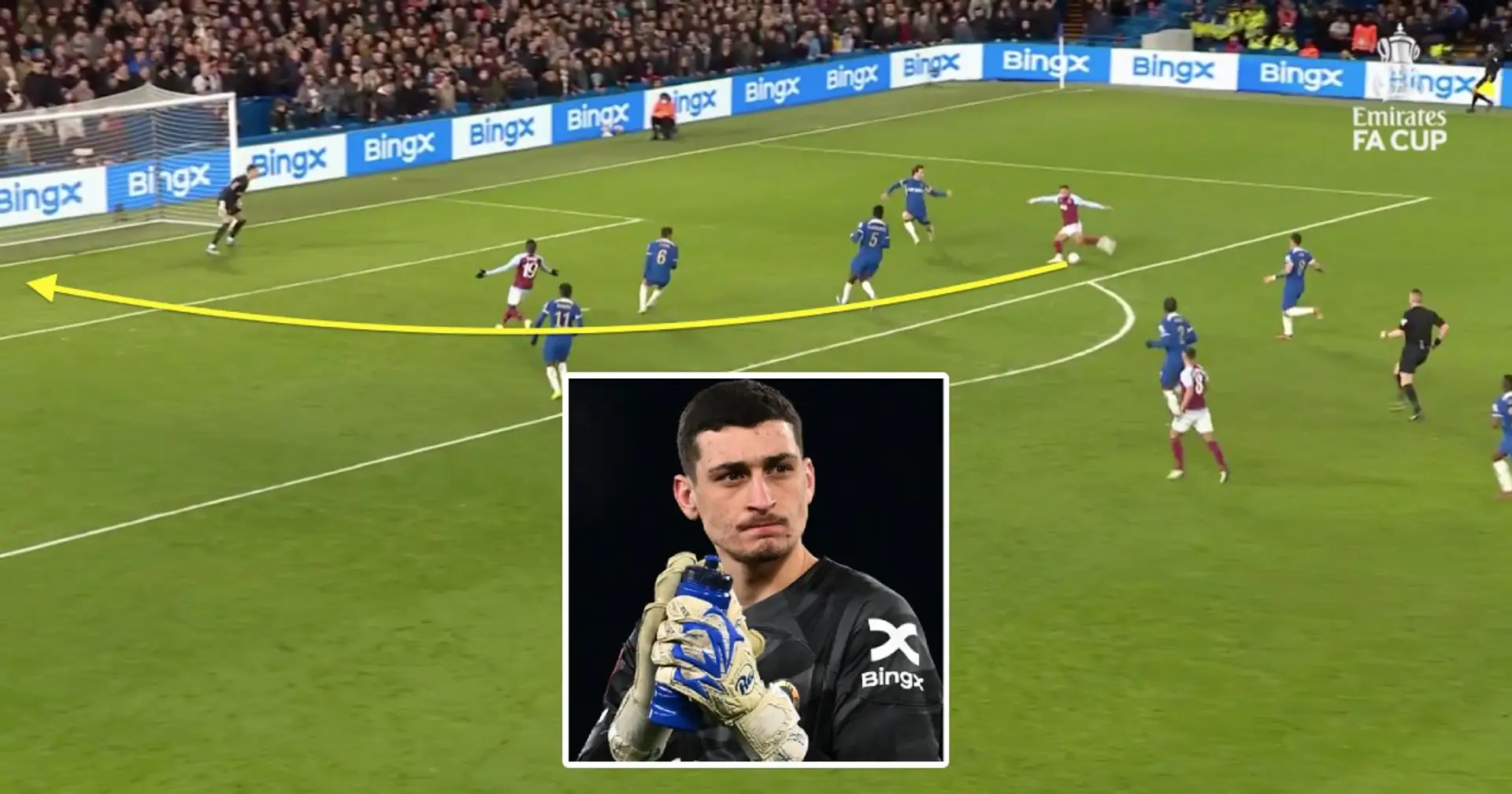 Кэш вбегает в штрафную и наносит удар по воротам «Челси». Петрович опускается низко справа от себя и делает блестящий сейв, сохраняя «Челси» в игре.