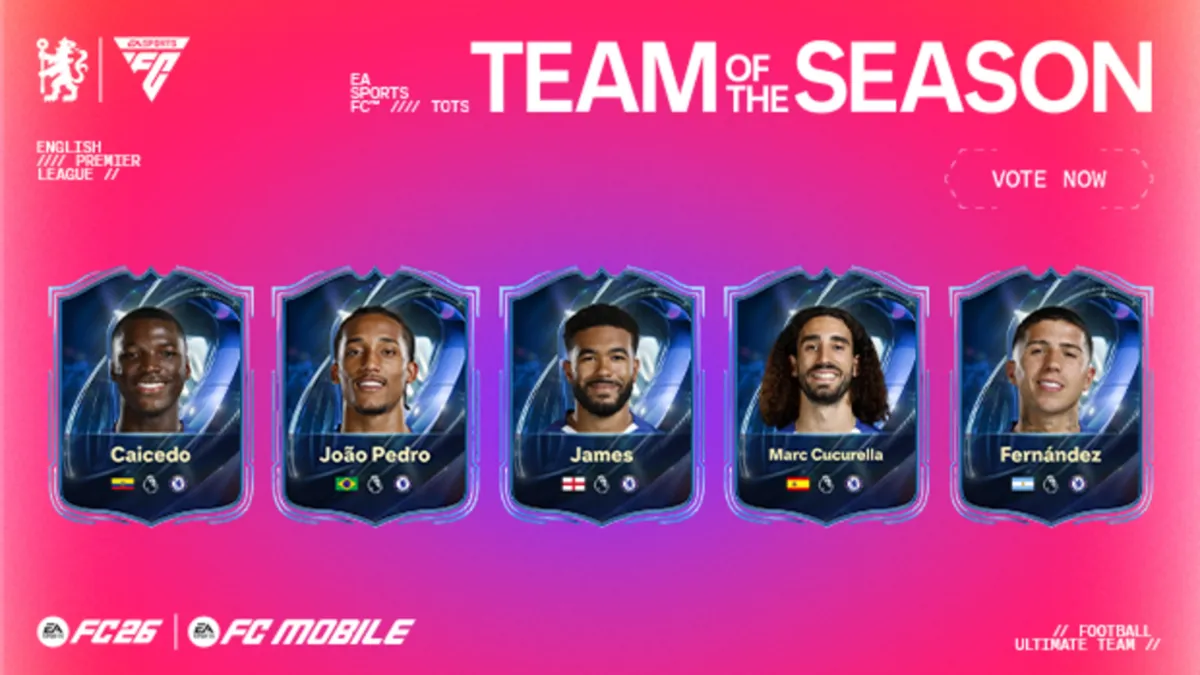 Пять футболистов «Челси» вошли в число номинантов на попадание в официальную команду сезона английской Премьер-лиги (TOTS) по версии видеоигры EA Sports FC26. Болельщики могут помочь игрокам «синих» занять свое место в финальной сборной, проголосовав до 10 апреля.