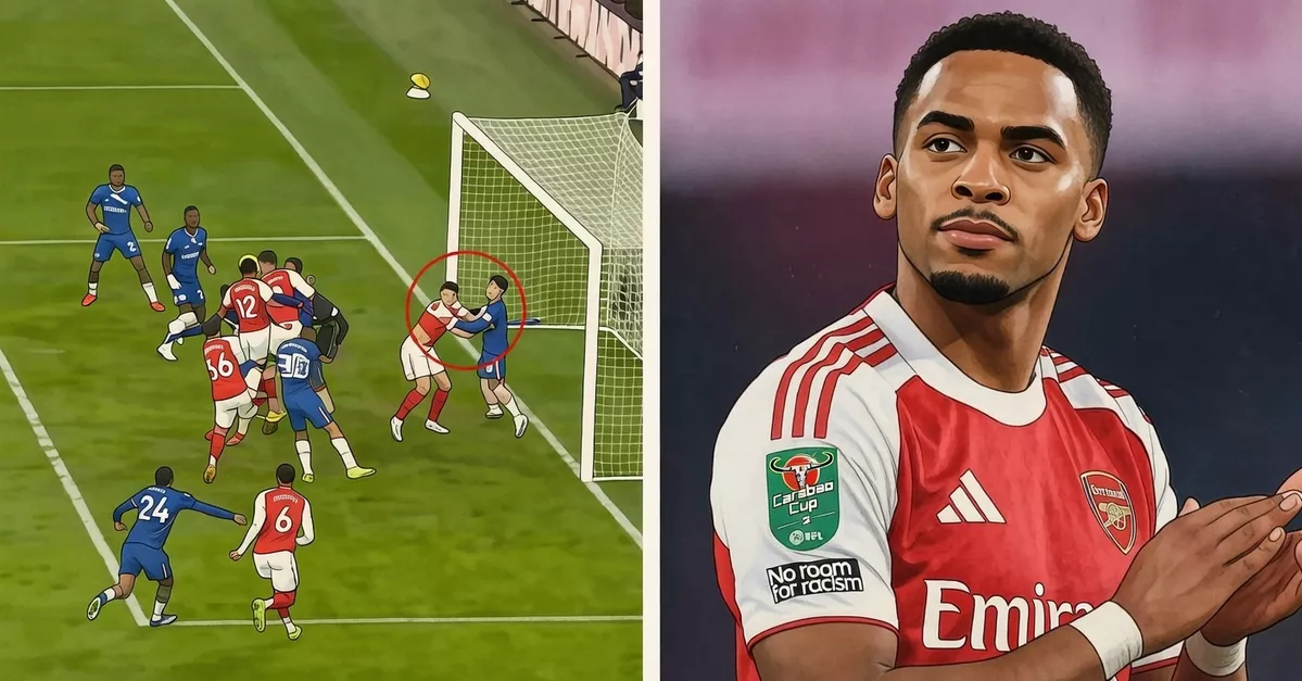 Форвард «Арсенала» напрямую мешал полузащитнику «Челси» Энцо Фернандесу вступить в борьбу за мяч. Дьёкереш заблокировал путь аргентинцу, фактически лишив его возможности выбить мяч головой и прервать опасную подачу.