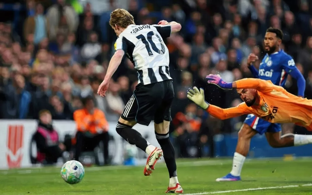 Начало встречи осталось за гостями. На 18-й минуте системная ошибка в оборонительных построениях «Челси» привела к голу: Тино Ливраменто разрезающей передачей нашел Джо Уиллока, который прорвался к лицевой и прострелил на Энтони Гордона. Вингер «Ньюкасла» без помех переправил мяч в сетку. До перерыва «синие» выглядели растерянно, а самым запоминающимся моментом стал мощный удар Энцо Фернандеса, который угодил в голову собственного партнера — Коула Палмера.